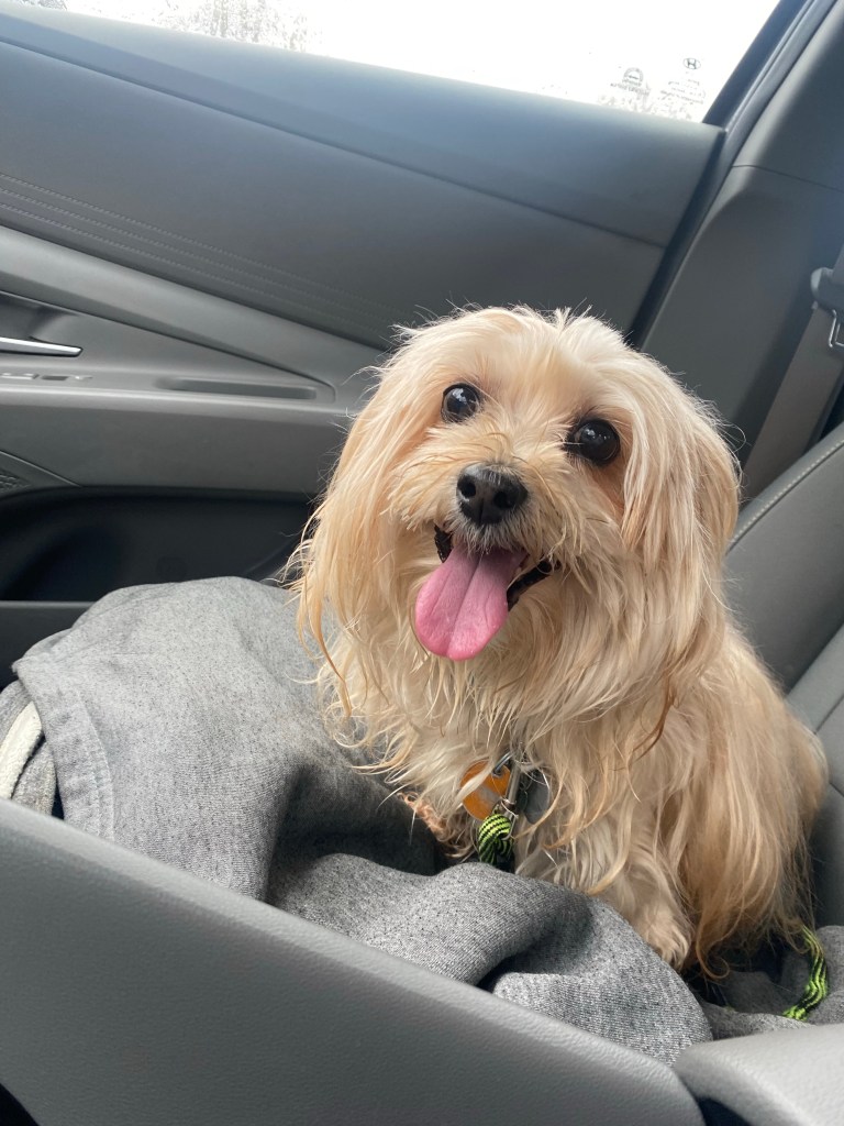 I love to take my dog on walks during the spring/ summer! He is a little guy so walks during the winter time are not pleasant for him. We usually go to this trail park that has a dog park within the park. He gets nervous in the car but once we get there he feels more free to walk around.